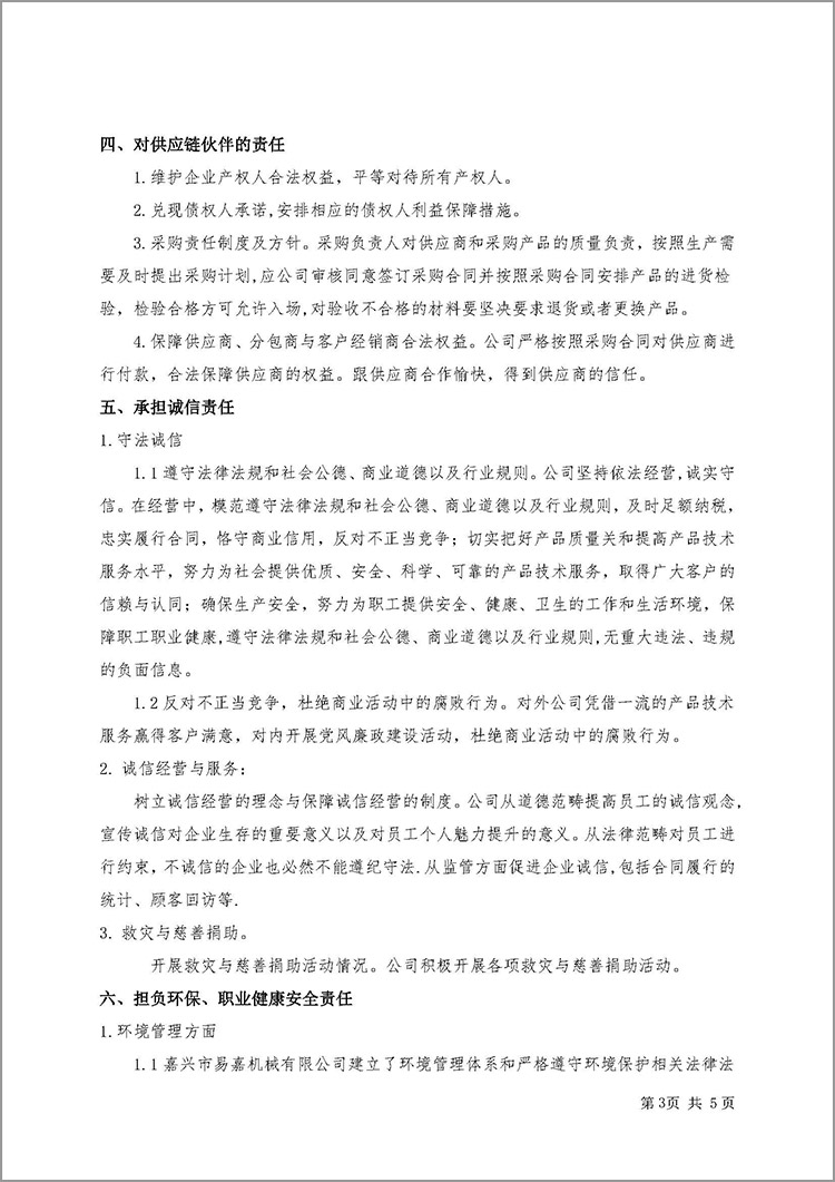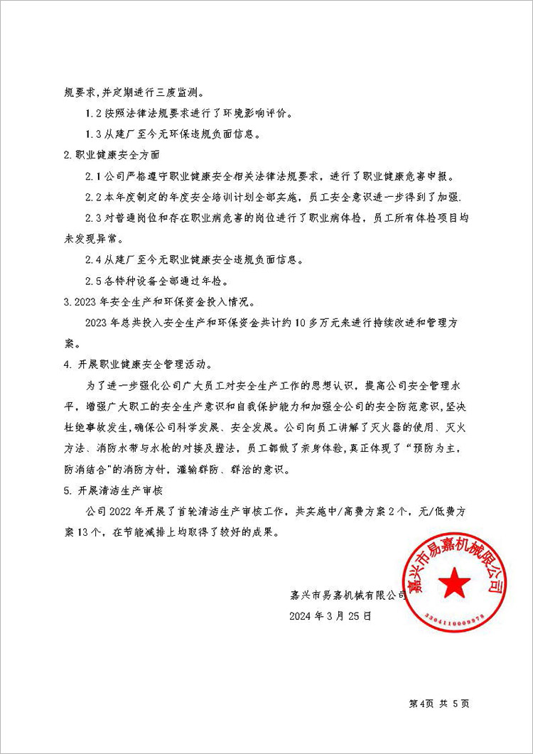 嘉興市易嘉機械有限公司企業社會責任報告(2024年度)