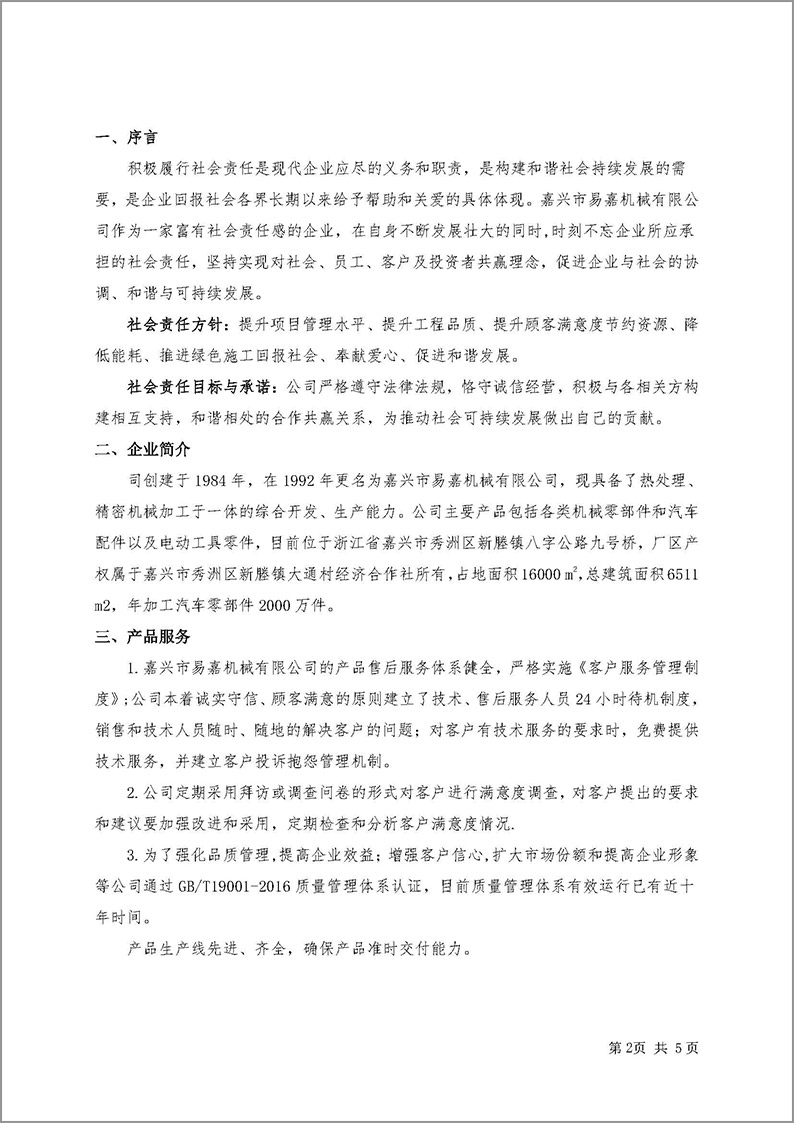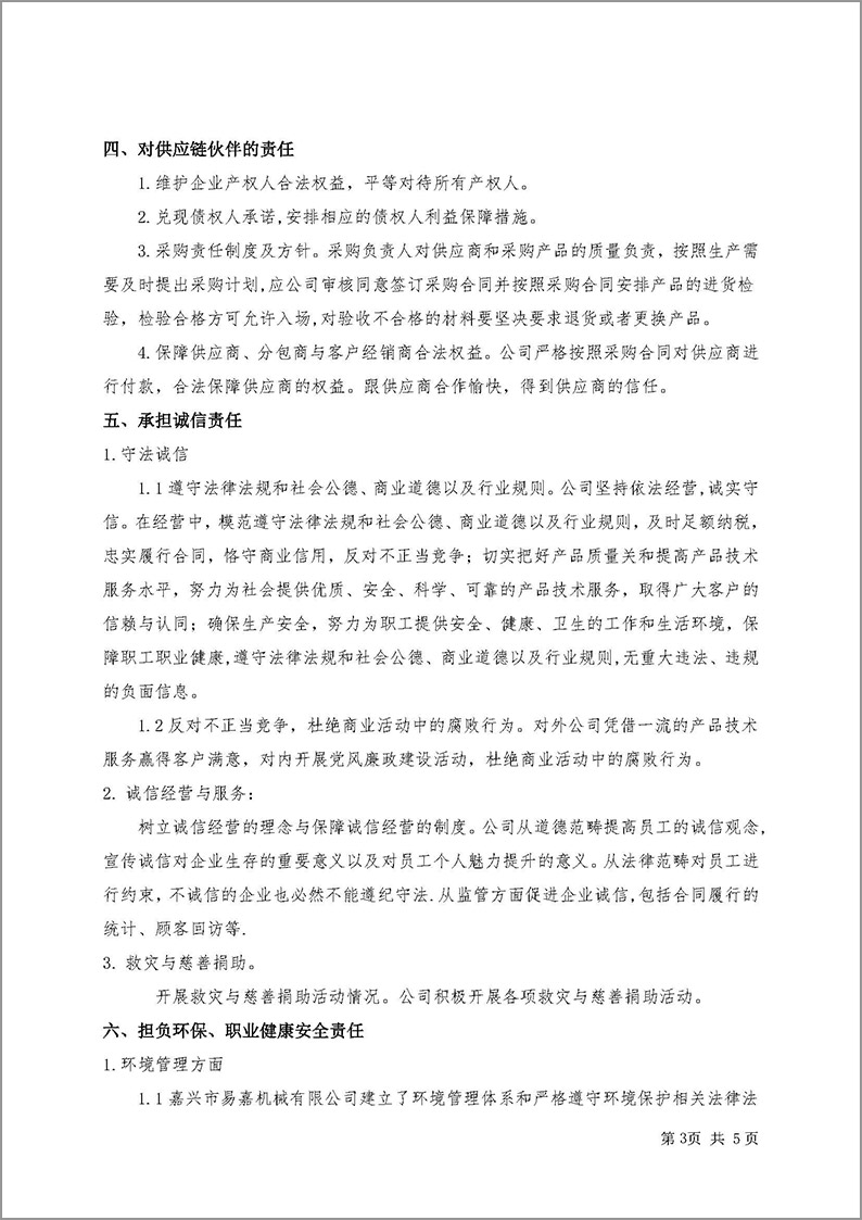 嘉興市易嘉機械有限公司企業(yè)社會責(zé)任報告(2024年度)